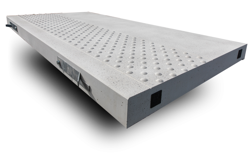 Les dalles de quais Stradal sont équipées en usine d’écarteurs entre dalles. Ils sont la garantie du respect obligatoire d’un joint de dilatation entre dalles pour préserver l’intégrité des quais dans le temps, quelles que soient les conditions climatiques. (Joint creux conforme à la norme NF P 98-335).